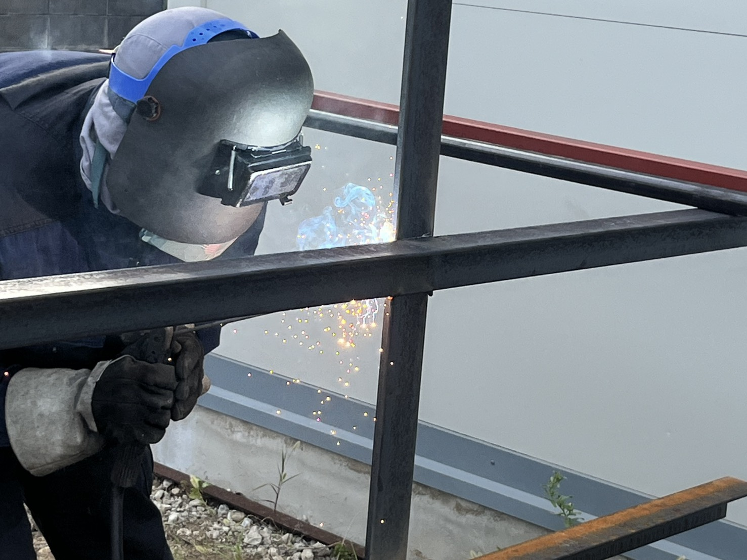 鉄骨溶接作業中の様子です。 一つひとつの工程を確認しながら、丁寧な作業を行なっています。